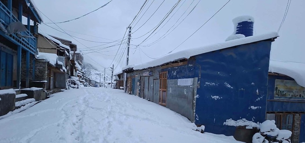 सशस्त्र भारी हिमपात कारण कागबेनी–कोरला सडक अवरुद्ध भएको छ । केही स्थानमा दुई फिटभन्दा बढी हिउँ जमेको छ । हिउँ परेसँगै स्याउ, उवा, फापर, जौँ र आलुलगायत बाली सप्रने आशा पलाएको घरपझोङ गाउँपालिकाका कृषि शाखा प्रमुख रोशन थकालीले बताए ।